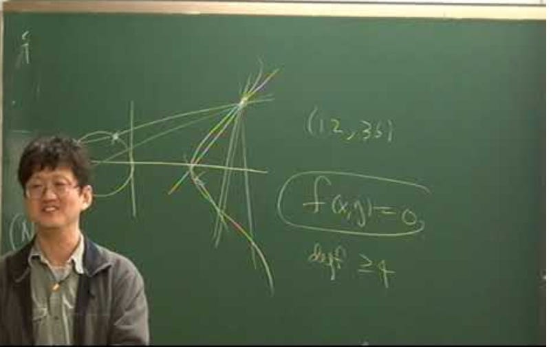 "Over the past decade Kim has described a very new way of looking for patterns in the seemingly patternless world of rational numbers. He’s described this method in papers and conference talks and passed it along to students who now carry on the work themselves. Yet he has always held something back. He has a vision that animates his ideas, one based not in the pure world of numbers, but in concepts borrowed from physics. To Kim, rational solutions are somehow like the trajectory of light."